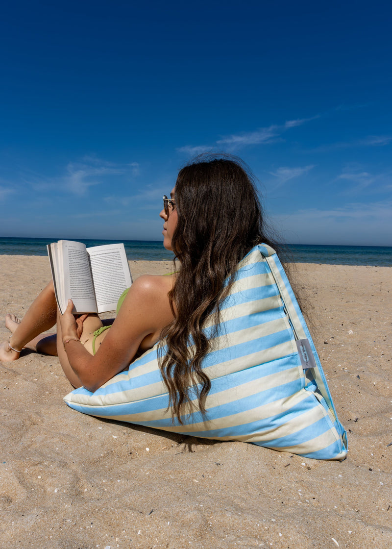 Carries like a bag, built-in pockets for your summer essentials, and unfolds into the comfiest bean bag under the sun.